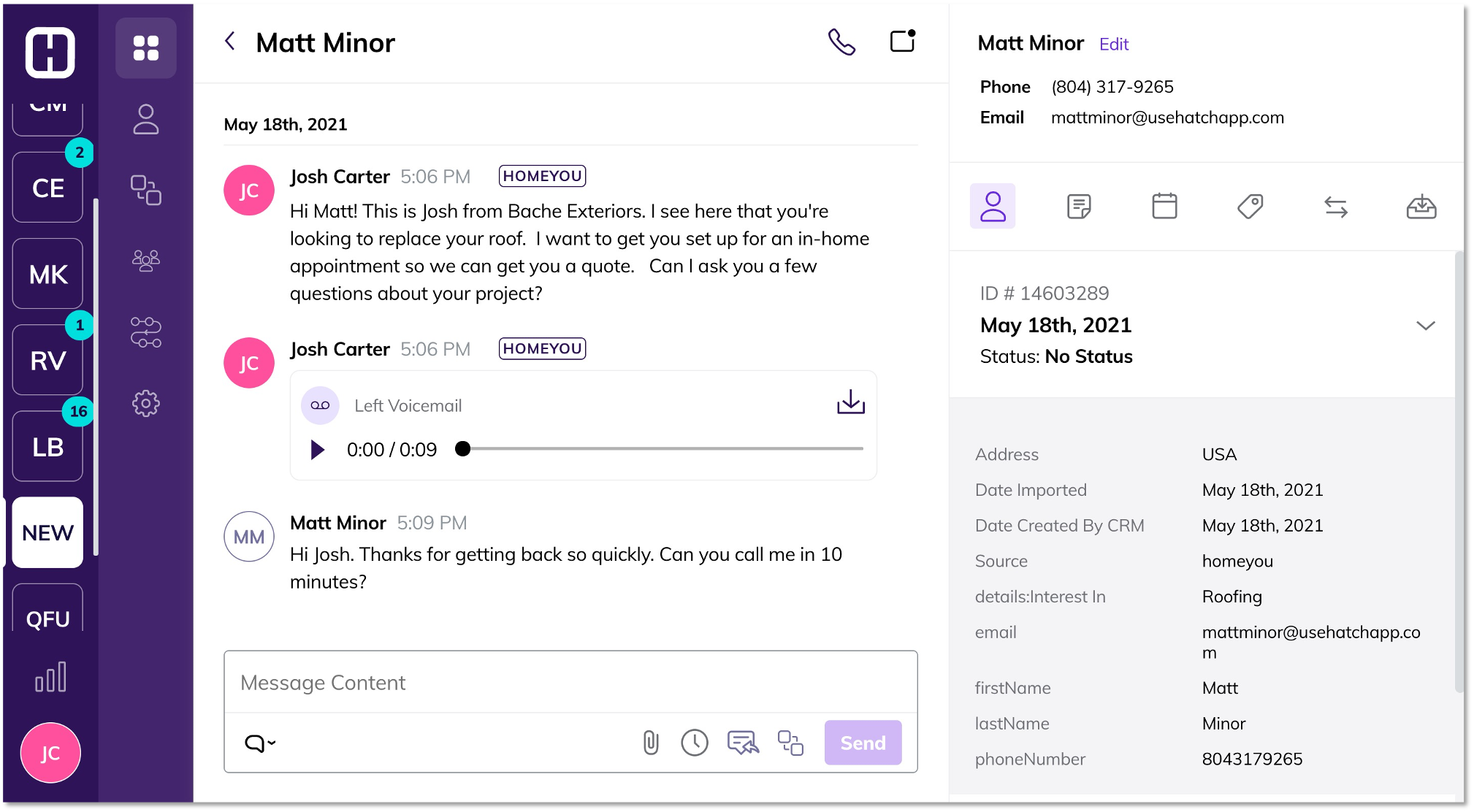 Connect Hatch with Homeyou to beat your local competitors to every new lead over text, email, and voicemail and set more appointments.