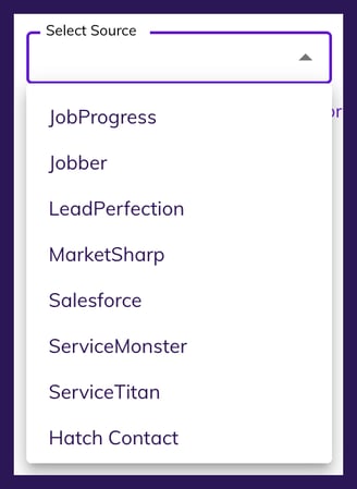 When you click the Source Picker drop-down, you will see a list of all data sources that at least one contact has in your Hatch account.