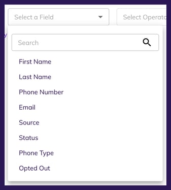 Once you've selected a source, the next option that will become available is to select from a list of fields that exist for the chosen source. This will be covered in the Audience Builder v2: Field Picker article.