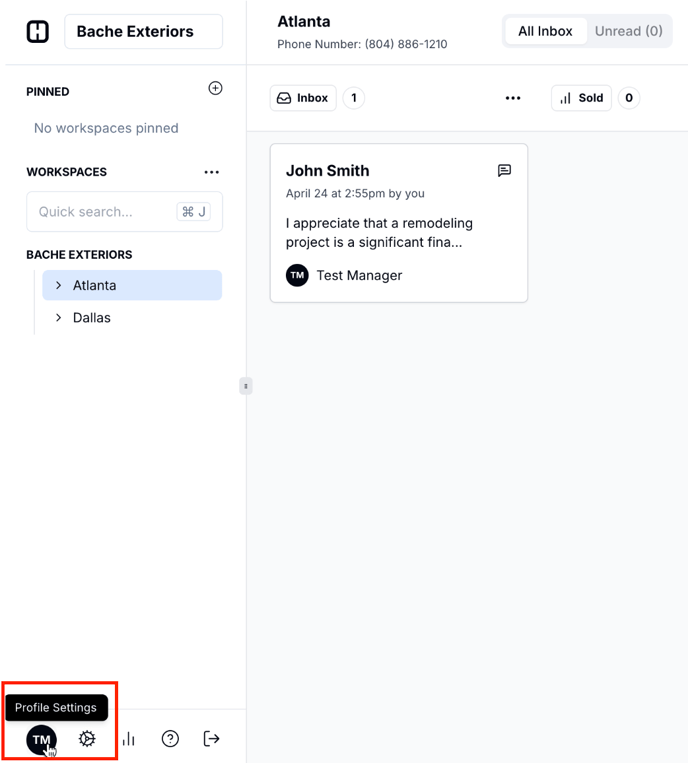 Click on your profile icon to access Profile Settings.