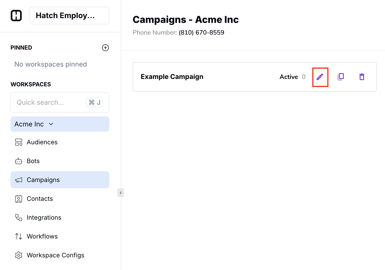 To start editing a campaign, simply click the pencil icon for the relevant campaign on the campaigns page.
