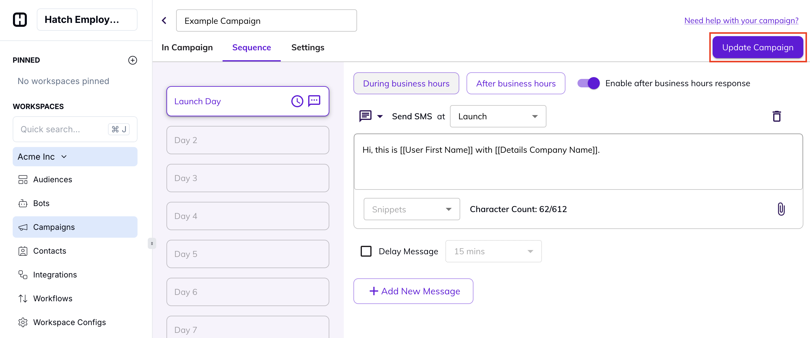 Note: Any contacts that were already put into campaign before making campaign edits will receive the original campaign verbiage.