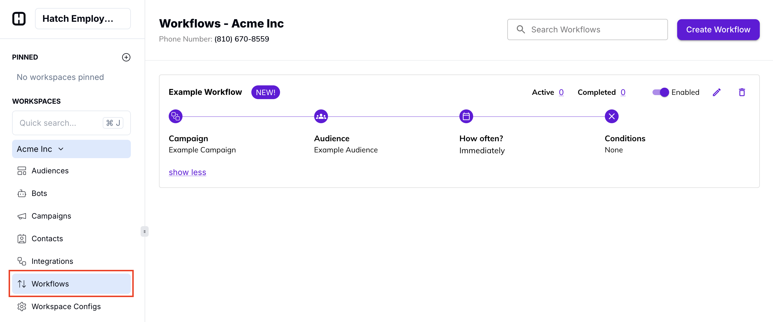 Workflows are the feature in Hatch that allow automatic launching of audiences into campaigns.